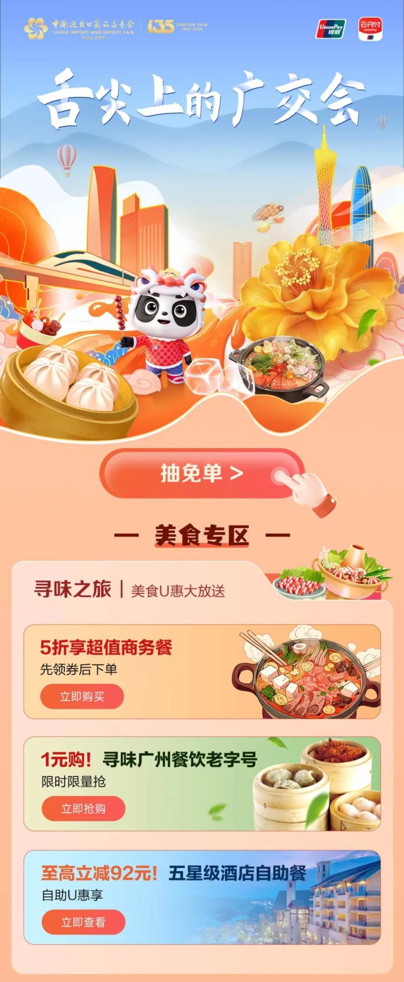 广交会期间,广州还发动银联、美团点评、抖音等平台开展“舌尖上的广交会”主题促销活动。