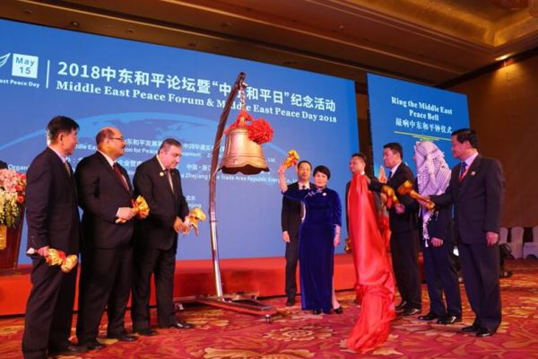与会嘉宾为“中东和平日”敲响和平钟