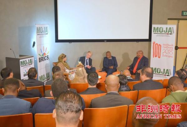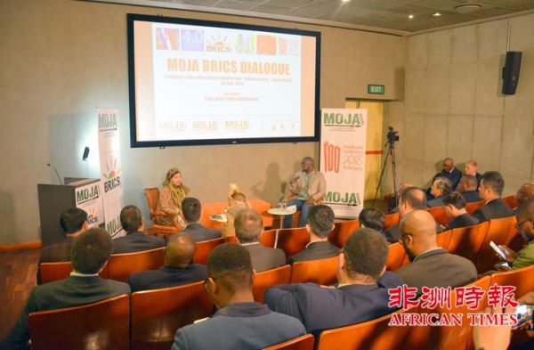 7月20日, 为了迎接即将召开的第十届金砖峰会, MOJA 调研中心在约翰内斯堡 举行了一场重量级的“金砖民间论坛”。这次论坛云集了各界代表,包括党政人士、外交使团、本地和中国企业,就金砖峰会对当地民生的影响意义做相关讨论。