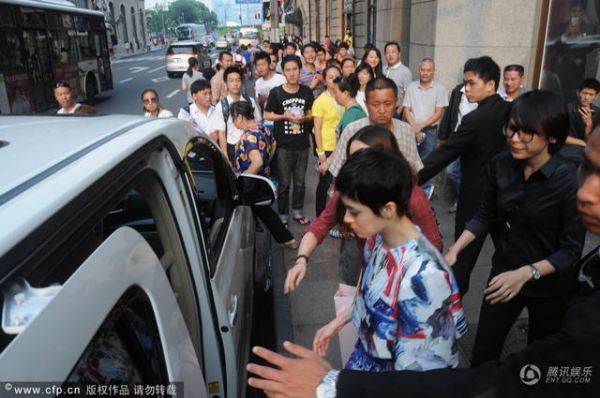 腾讯娱乐讯 上海,近日,孙俪现身上海闹市区外滩和平饭店参加活动,在活动结束之后酒店出动众多保安筑起人墙为孙俪开辟道路,这一行为使得来往行人及其不便,当有群众指责保安这种行为不妥时酒店保安出口成脏怒骂路人,这时孙俪走出酒店快步走上车对于路人和保安的骂战置之不理上车走人。