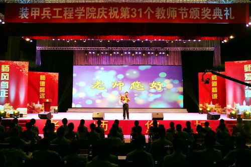 这是中国人民解放军装甲兵工程学院专门为学院教师精心设计安排的一场音乐会。当记者到达现场时,学院礼堂坐满了官兵。这里面除了有我们可歌可敬的装甲兵工程学院优秀教师外,还有前不久参加阅兵合唱团凯旋而归的装甲兵学员方队。