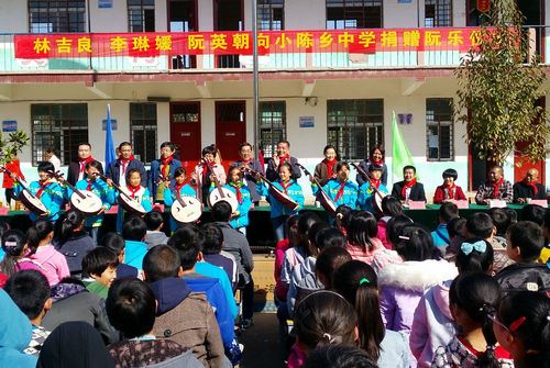 中华志愿者杂志(记者:许顺喜)报道,近日,由中华阮艺术家协会副会长兼秘书长、著名的教育家李琳媛;爱心人士阮英朝、阮少文等人共同发起组织的向学生捐赠阮乐乐器,在河南尉氏县小陈中心校隆重举行。