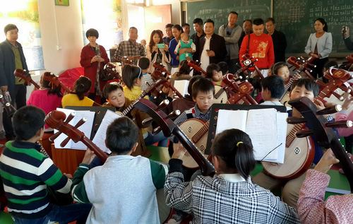 李琳媛等艺术家现场向学校捐赠阮乐乐器及教材