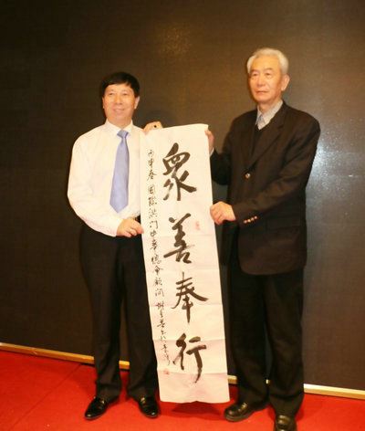 台湾国际洪门总会主席刘沛勋现场向刘瀚锴先生赠送书法作品