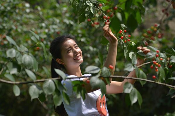 游客正在采摘樱桃