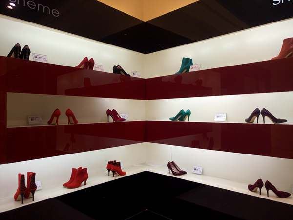 陈列各民族元素鞋的专柜,其设计灵感来自各民族纹案。