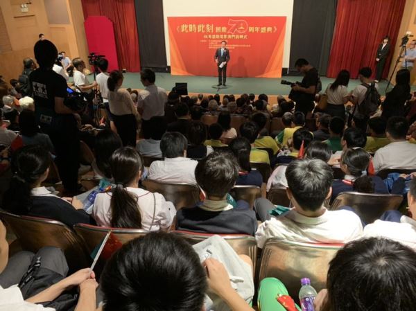 11日,由中央广播电视总台推出的《此时此刻——国庆70周年盛典》4K粤语版电影,在澳门永乐戏院举行首映仪式。