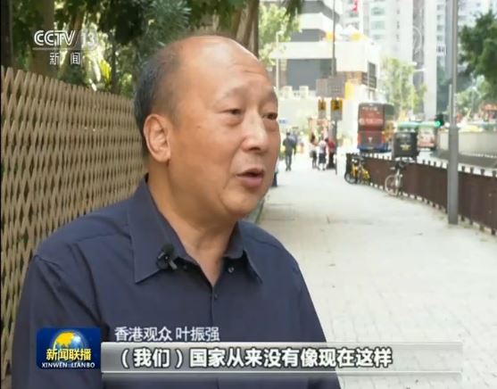 香港观众 叶振强:(我们)国家从来没有像现在这样,欣欣向荣、蒸蒸日上。我们的人民也从来没有像现在这样,意气风发、信心豪迈。