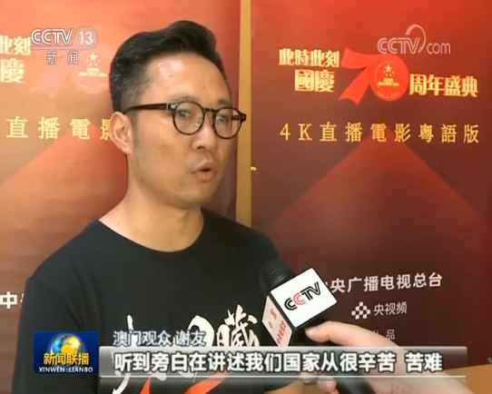 澳门观众 谢友:听到旁白在讲述我们国家从很辛苦苦难,到我们发展起来。这一段是让我感受到,我作为中国人,作为澳门特区的居民,我感到很自豪!在这一刻。(央视记者 张怡 苏子杰 戴峰 王冠忠 田晶晶)