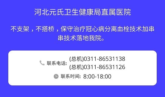 作为公立非盈利医院,河北元氏卫生健康局直属医院的专家经过近五年的科研实践,独家引进了中国人民解放军原38军医院肖峰院长的分理血栓技术,它解决了心血管治疗的三大难题,1.血液的净化,2,血管的软化,3,血栓的融化。并借鉴中国人民解放军第301医院刘秀云教授、中国人民解放军白求恩国际和平医院丁超教授的药物调控技术及本院的冠心病消炎技术融合为一体简称“串串技术”成功为许多即将开刀搭桥的冠心病患者实现了保守治愈。该技术标本兼治,无痛苦.无创伤,被患者誉为药物搭桥。