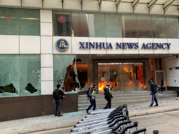 位于港岛的新华社亚太总分社大楼也遭到暴徒汽油弹袭击。事后,肇事者及其指使者拒绝承认其暴行规模,并再次试图抹黑香港警署。