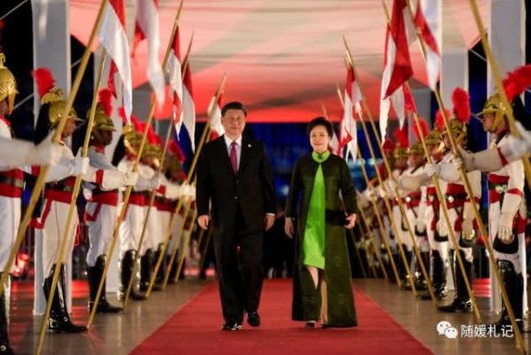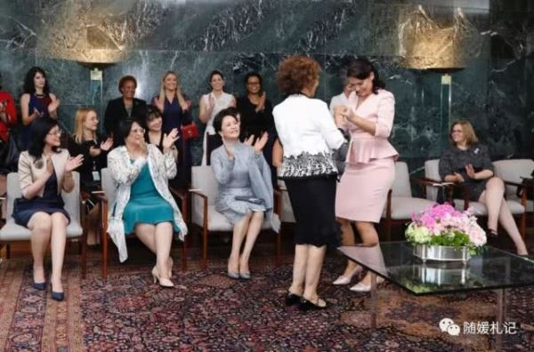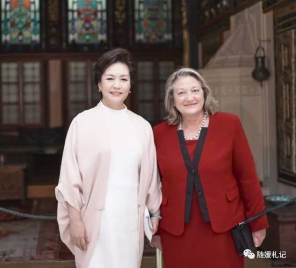 《总理夫人身着从上海买的外套同“牡丹仙子”一起出席活动》