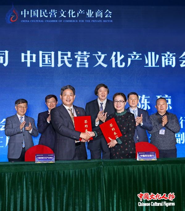 中国民营文化产业商会新任会长吕建中与中国民生银行党委副书记、副行长陈琼签约