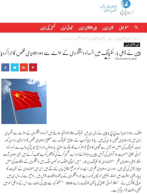 巴基斯坦国家通讯社“联合通讯社”在报道中指出,这两部纪录片不仅向国际社会介绍了新疆的真实情况,同时揭露了一些西方人士和媒体打着人权、民主和自由的幌子向中国施压并组织分裂活动的阴谋。