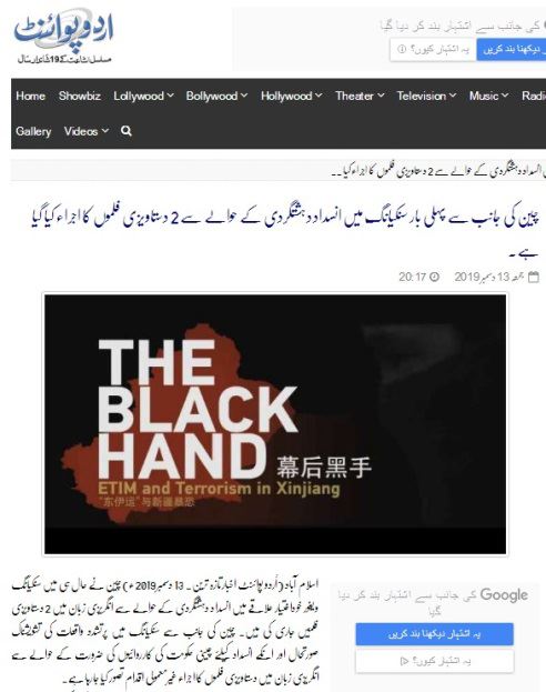 △URDUPOINT网站报道CGTN反恐纪录片