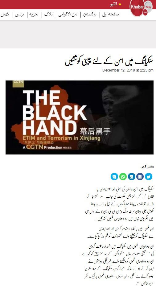 △KHABARWALAY网站报道CGTN反恐纪录片