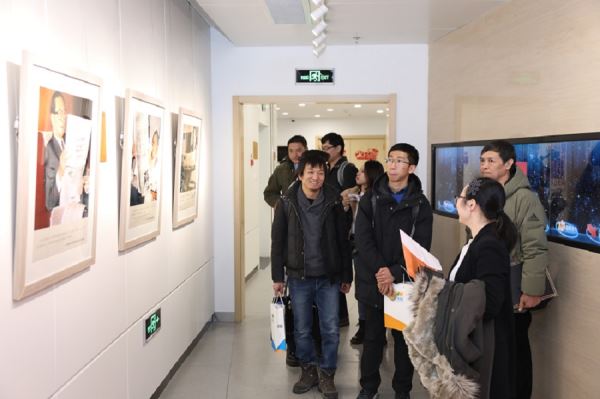 嘉宾们一同参观了现场其他的照片展示墙。(谢明/摄)