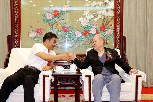 中国健康新闻网总编辑与毛泽东生前保健医生王鹤滨活动现场亲切交谈