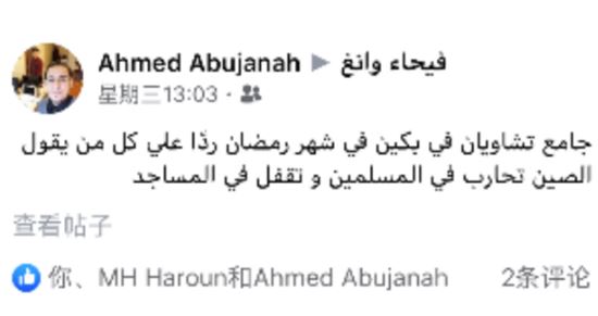 △网友Ahmed Abujanah:“北京朝阳清真寺在斋月期间正常做礼拜的视频,是对那些质疑最好的回应。”
