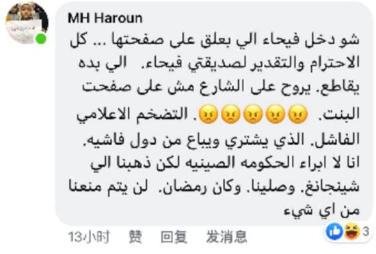 Mohamed Reda Sul:“王馨,之前我很喜欢看你的账号,但是中国伤害维吾尔族的政策是不对的。你们怎么可以这样对待穆斯林呢?我真的很失望、很难过。”