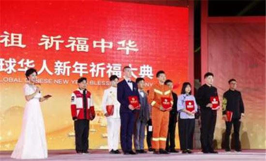 陕西广播电视台“丝路万里行”媒体团带着海内外侨胞们的殷殷嘱托走上舞台,献上他们最真诚的祝福;中国播音主持金话筒奖获得者杨芳、张彤和来自五大洲的21名青少年齐诵《黄帝情》,字正腔圆,情真意切;身在全球各地的侨胞和留学生,还通过录制VCR的方式参与本次大典,祝福祖国繁荣昌盛,同胞新年幸福安康。