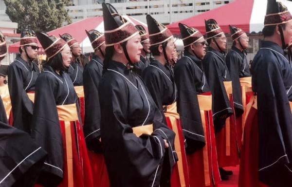 肃穆古意的祭孔让人们仿佛穿越时空。整个典礼遵从古礼,主祭、陪祭身着汉服,在钟鼓乐声中,来自海峡两岸的同胞敬香行礼,诵读祭词。
