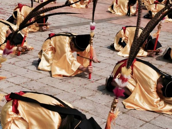 左手执龠,右手秉翟。为先贤献上六佾之舞。