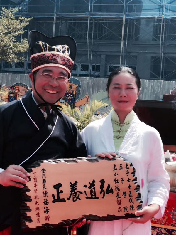 “孔圣家邹鲁,儒风蔼典坟。”天不生仲尼,使万古如长夜。孟子学院院长孟小红女士表示,以孔孟先贤为代表的儒家文化对中华民族的影响泽被深远,金门祭孔遵照古礼祭祀先贤,对于唤醒人们对孔子思想的尊崇和弘扬社会主义核心价值观来说具有现实的榜样作用。孟小红女士同时呼吁社会各界积极推广儒家文化,让儒家文化不仅仅是纸上真言,而且能对吾辈在生活与学习、工作中产生积极的影响。