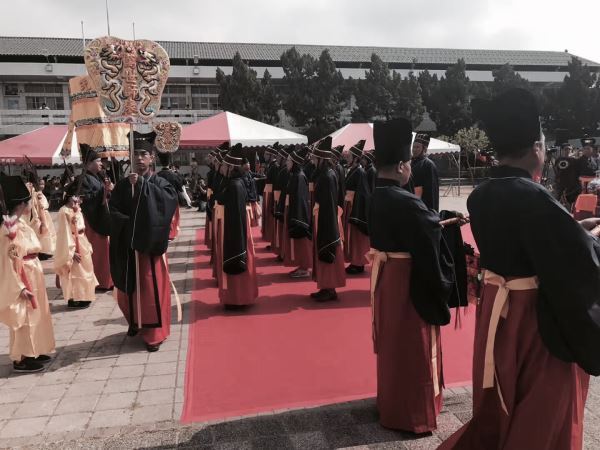 大典开启前,与金门县副县长吴成典先生、纽西兰中华圣道书院院长赖秀丽、柬埔寨孔子学院院长黄秀芬等知名人士亲切交流