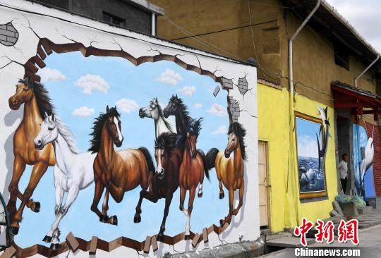 开源村中,一幅幅惟妙惟肖、栩栩如生的3D墙画将村落里的民居装扮一新。
