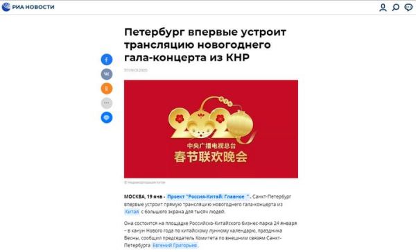 俄新网19日报道称,圣彼得堡市“千人看中央广播电视总台春晚”活动将于中国农历除夕(1月24日)在俄中商务园举行。