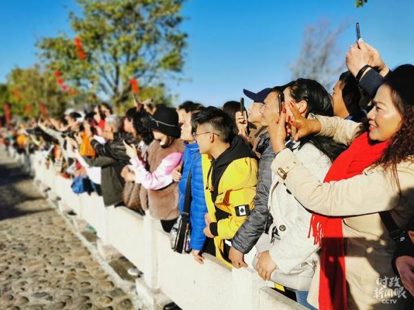 △总书记离开和顺古镇时,当地群众和游客热情相送。(总台国广记者蔡靖骉、央视记者龚雪辉拍摄)