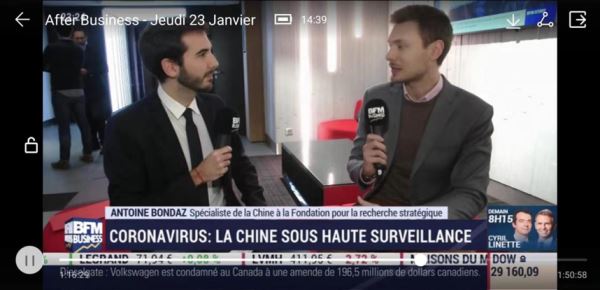 法国BFM BUSINESS电视台23日与总台法语部合作,邀请法国战略研究基金会中国问题专家安东尼奥(Antoine Bondaz)参加节目访谈。安东尼奥表示:“中国政府采取了积极迅速的措施,控制了疫情蔓延。中国政府做出的快速反应,值得肯定。”