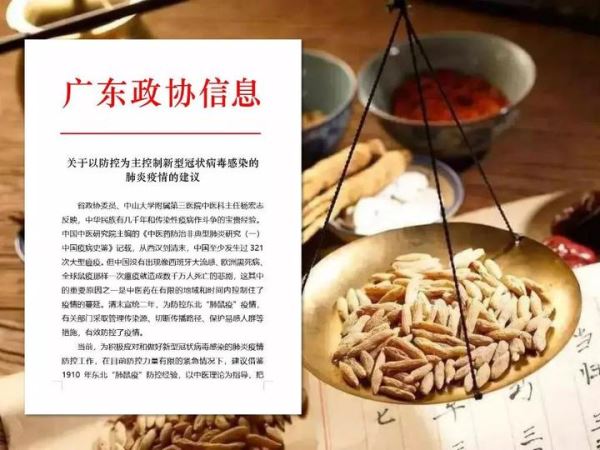 部分委员通过提交提案和社情民意信息,积极向党委政府建务实之言、献有用之策。省政协委员、中山大学附属第三医院中医科主任杨宏志在大年初二撰写了《以防控为主控制新型冠状病毒感染的肺炎疫情的建议》,呼吁借鉴1910年东北“肺鼠疫”防控经验,把隔离防控作为疫情防控重点。同时,建议充分发挥中医“治未病”优势,提高群众自身免疫力。