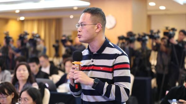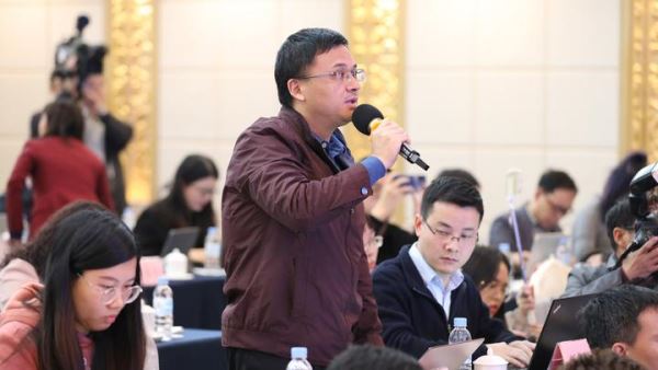 广东广播电视台记者提问(摄影:曹雅琴)