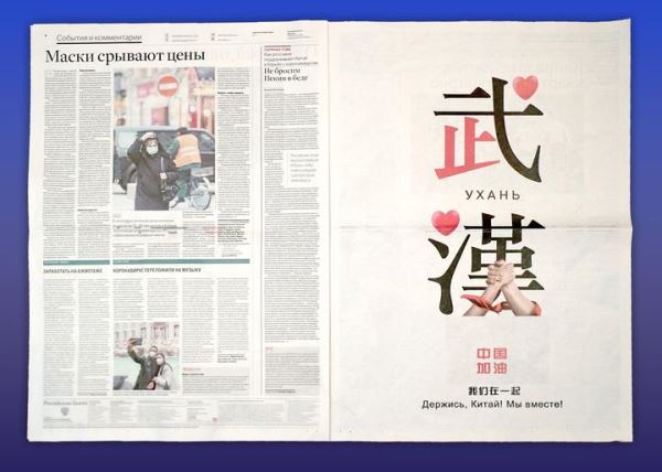 外交部发言人耿爽2月10日在网上例行记者会上表示,《俄罗斯报》发表社论《中俄患难与共》和推出“中国加油!我们在一起!”整版海报充分反映了俄罗斯政府和人民支援中国抗疫的心声。中方愿继续与俄方就防控疫情加强协调与合作。