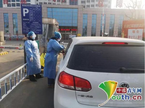 图为潘子翯(右)在核查车辆信息。(受访者供图)