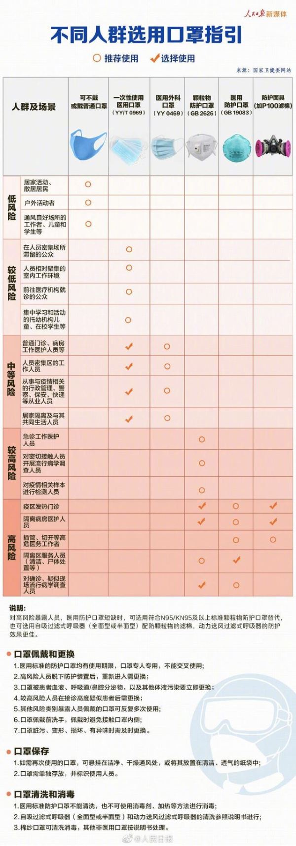 指南还明确,医用防护口罩(N95及以上级别)主要供医护人员等使用,普通民众并不需要如此高级别的防护。