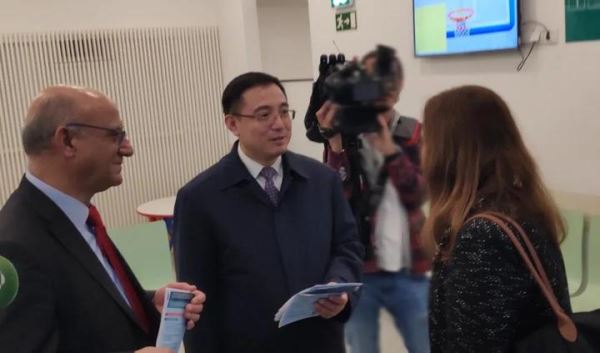 最后,中国驻葡萄牙大使蔡润先生发言。蔡润大使提到,“今天,我们一起走访里斯本市马丁姆尼什区的中国侨胞经营的店铺和餐馆,了解大家的经营情况,向大家表达慰问和支持,这充分体现了中葡两国人民团结一心共克时艰、共同抗击新冠肺炎疫情的友好情谊。我谨代表中国驻葡萄牙大使馆对这次活动的倡议者——格里洛市政委员,对弗雷塔斯局长、马丁斯先生、蔡文显先生以及参加今天活动的各位来宾,对积极支持中国抗击疫情的葡萄牙各界朋友,表示诚挚敬意和衷心感谢。在此也要特别感谢里斯本市政府刚刚通过了关于呼吁与中国侨民团结在一起的倡议”。