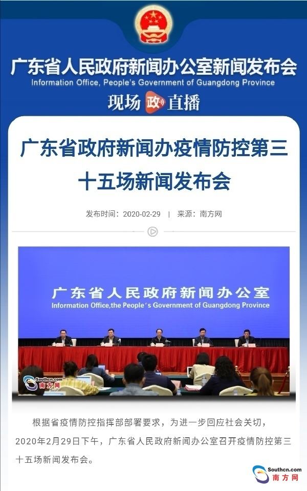 昨天(2月29日)下午,在广东省政府新闻办持续召开了35场疫情防控新闻发布会之后,省政府新闻办副主任邓鸿宣布,今后将根据实际情况适当调整发布会的召开频率,不定期举行。