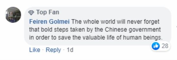 正如Facebook网友Feiren Golmei所说:“全世界都不会忘记,中国政府为了拯救全人类的生命而采取的大胆果断措施。”