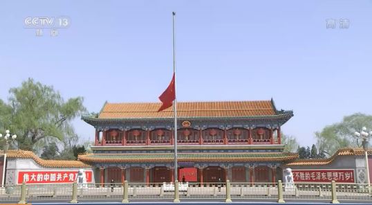 今天,北京天安门、新华门和全国人大常委会、国务院、全国政协、中央军事委员会、最高人民法院、最高人民检察院所在地,全国和驻外使领馆下半旗志哀,全国停止公共娱乐活动,以表达全国各族人民对抗击新冠肺炎疫情斗争牺牲烈士和逝世同胞的深切哀悼。
