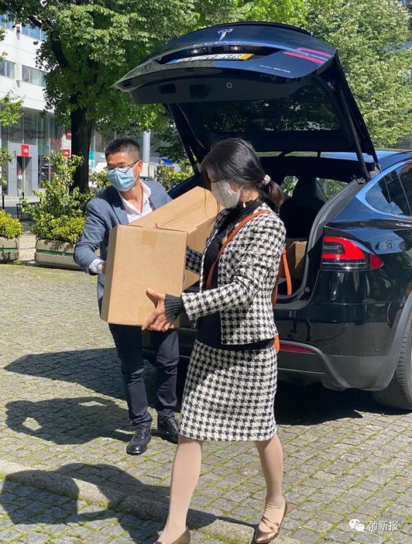 5月7日,总会领导“兵”分两路发送口罩。一路由总会的第一常务副会长龚向阳带领常务副会长叶德静、董静波,秘书长叶学挺、副秘书长林丽洁和新会员吕亚楠,将早一天分装准备好的20箱一万个口罩,于上午11时到达一周前预约好的葡萄牙第二大城市波尔图市政府,送上了一万个口罩。副市长Catarina Araújo和市政府办公室主任Nuno Nogueira Santos及她们的同事已经等候在那里欢迎,并举行了简要的捐赠仪式。副市长非常高兴的对总会此举连说感谢、称赞不绝,并热情邀请大家合影留念。随后,大家又赶往了波尔图学生学者联合会,学联主席胡玥和她同事等候迎接,接收了总会的1000个口罩。他说,你们总会为北部的留学生送上了防疫口罩,帮助学生学者解决平安度过疫情的口罩需求。另一路由总会的常务副会长金东带队,带着一千个口罩送往Vila nova da cerveira市政府,由市长franando亲自接待接收,一起合影,并赠送纪念章表示感谢。