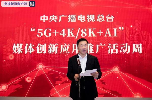 为迎接2020年全国两会,中央广播电视总台成功进行了国内首次5G+8K实时传输和快速剪辑集成制作。5月19日总台举办了“5G+4K/8K+AI”媒体创新应用推广活动周启动仪式,中宣部副部长,中央广播电视总台台长、总编辑慎海雄,中央广播电视总台副台长阎晓明、蒋希伟,中央广播电视总台编务会成员以及中国电信、中国移动、中国联通负责人出席。