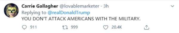 网民:“你不能用军队攻击美国人!”↓