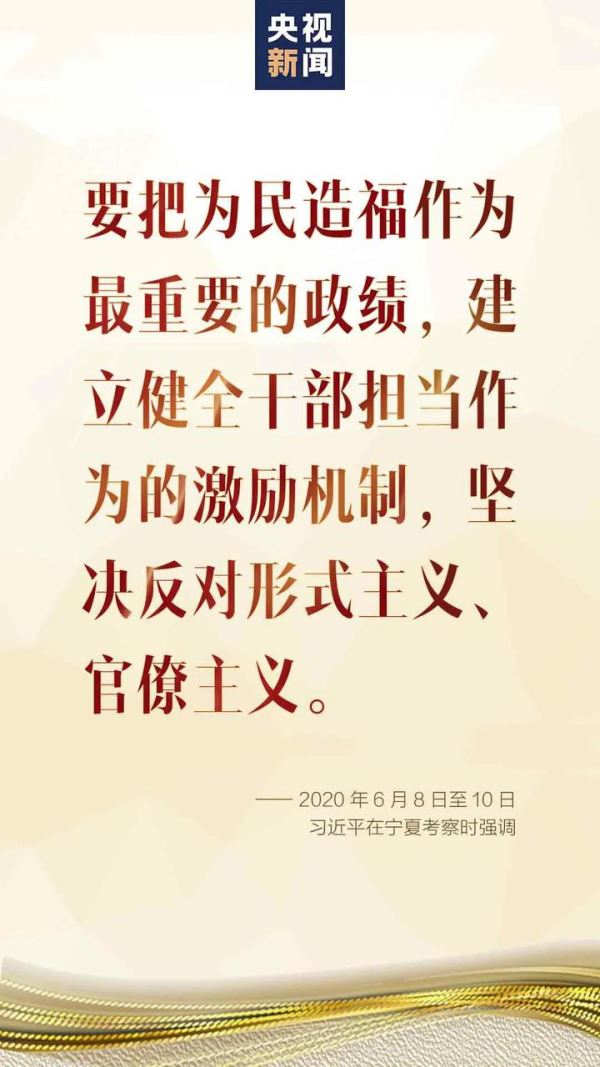 中共中央总书记、国家主席、中央军委主席习近平6月8日到10日在宁夏考察时强调,要 落实全国 “ 两会 ” 工作部署, 努力克服新冠肺炎疫情带来的不利影响,优先稳就业保民生,决胜全面建成小康社会,决战脱贫攻坚。