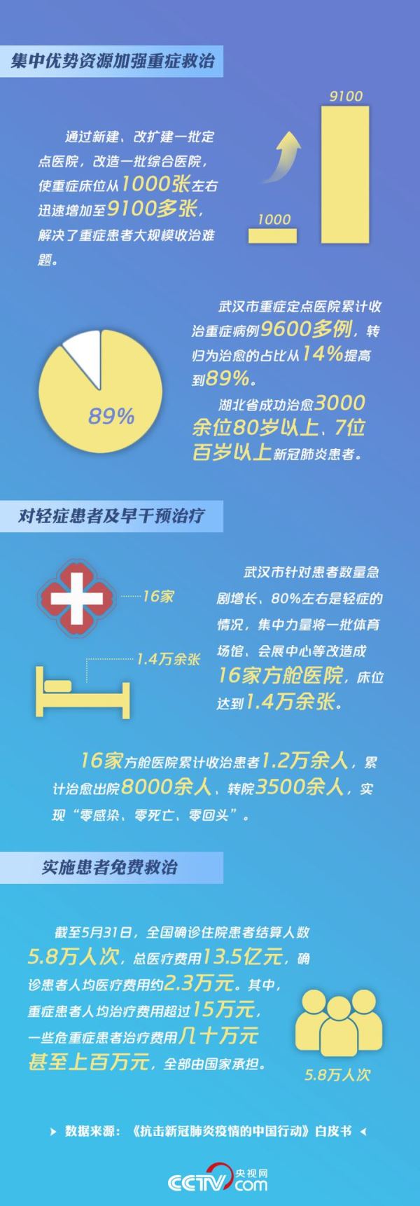 “人的生命只有一次,必须把它保住。”“无论年龄再大、病情再重我们都绝不放弃。”“不惜代价,要让患者用上最好的设备。”一个个战“疫”成果的大数据,无不彰显了总书记忧民、爱民的赤子情怀。