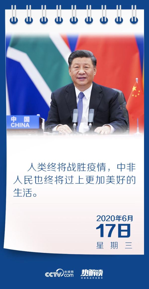 热解读北京时间6月17日晚,一场由中国和非洲联盟轮值主席国南非、中非合作论坛共同主席国塞内加尔共同发起的中非团结抗疫特别峰会以视频形式召开,习近平主席主持这次特别峰会,并发表题为《团结抗疫 共克时艰》的主旨讲话。