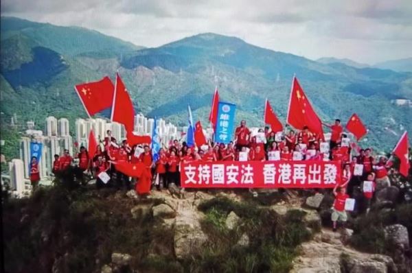 图:21日,香港市民团体登上狮子山