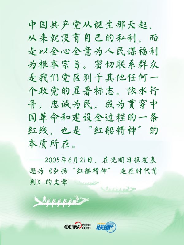 联播+过端午,赛龙舟。龙舟这项传统运动,象征着中华民族的拼搏、坚韧、团结,承载着深植在民族基因里的爱国主义之魂。